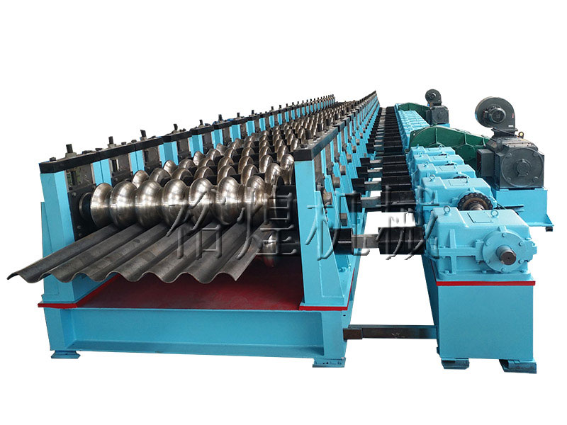 設(shè)備工作原理:該設(shè)備為冷彎型材成型專用設(shè)備,屬于非標(biāo)設(shè)備,是根據(jù)用戶的產(chǎn)品要求而設(shè)計訂做的。此設(shè)備首先是把原材料放在料臺上,調(diào)整進(jìn)料基準(zhǔn),然后由主機(jī)上的主模具和一些特殊的輔助成型裝置逐步變形而形成一個所需要的幾何形狀,達(dá)到用戶對該產(chǎn)品的使用要求。最后由人工搬離收料臺。